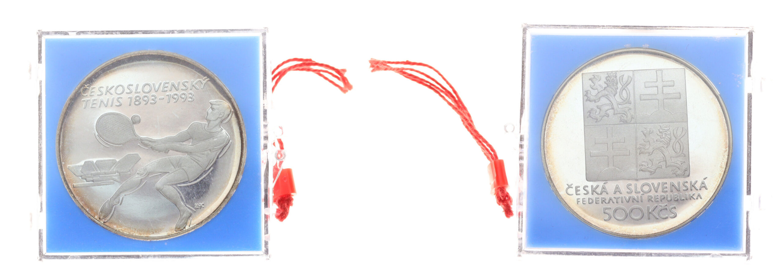 500 Koruna, 1993, Tenis, Ag mince, ryzost 0,900, váha 24 gramů, Aurea 195, provedení PROOF (!!!), původní kapsle s prčetí, jemná patina po okruží – jasné potvrzení pravosti, ražební lesk, stav 0/0 – luxusní sběratelská jakost, oblíbené