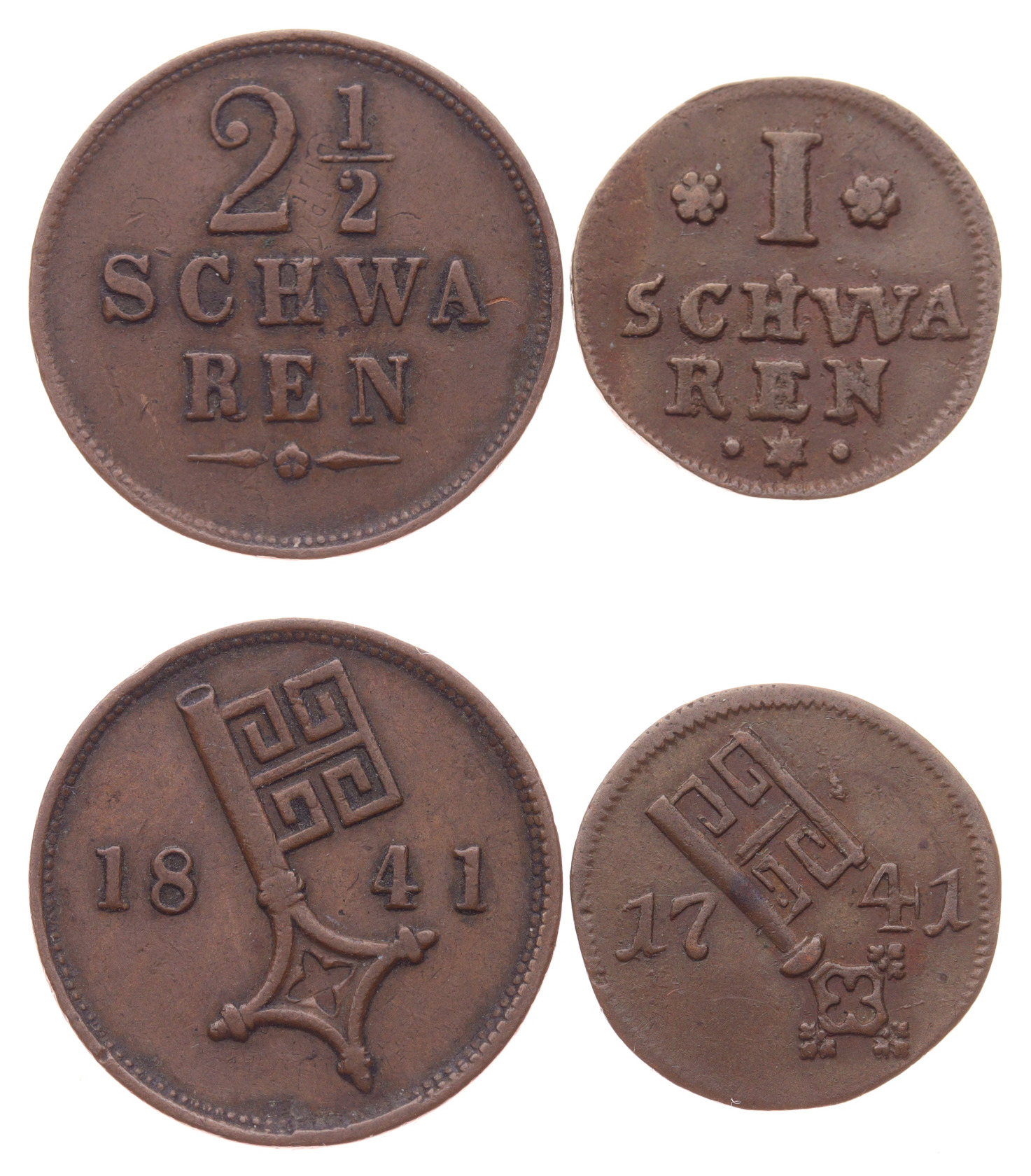 1 + 2 1/2 Schwaren, 1741/1841, CU mince, stavy 1-2, viz autentické foto